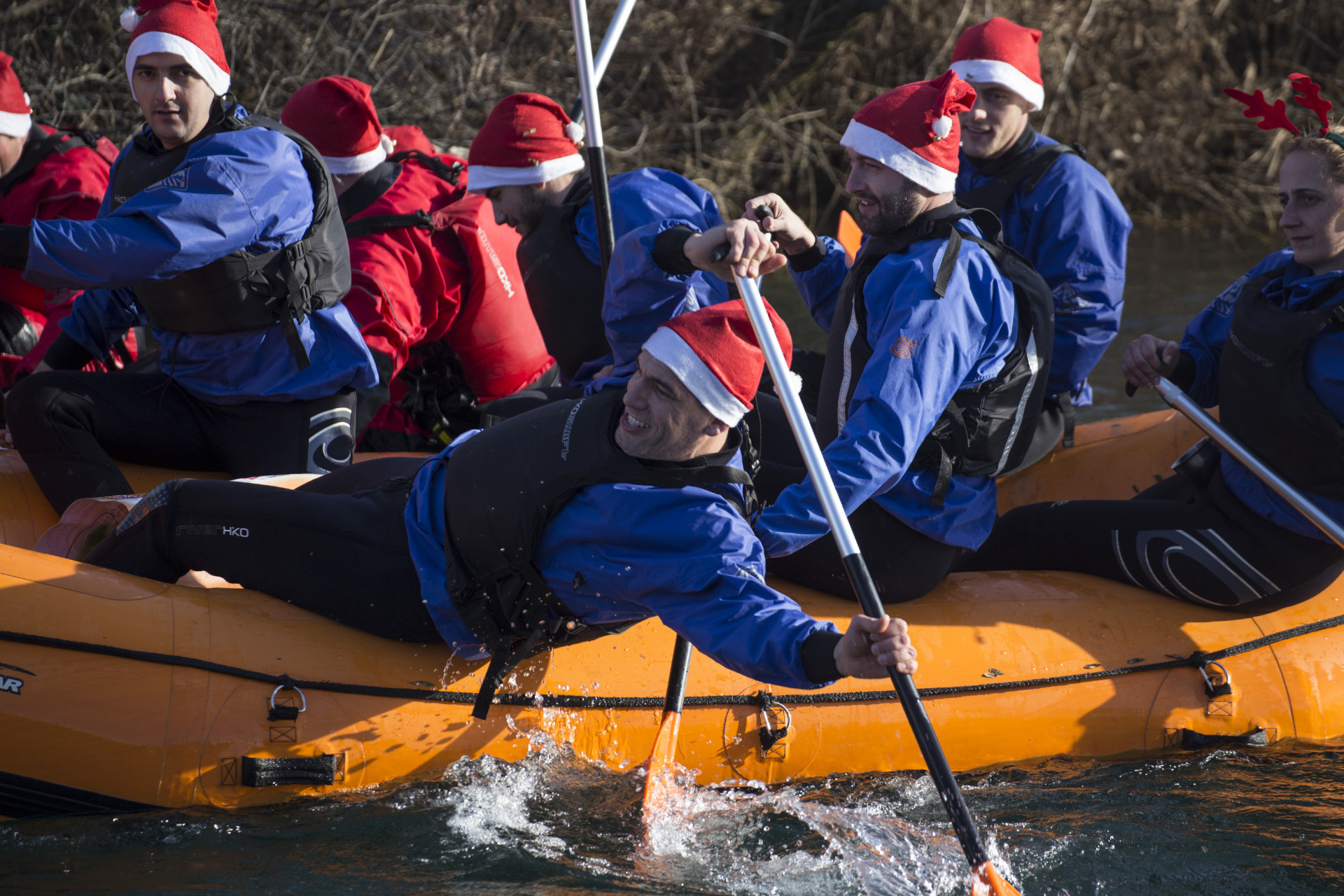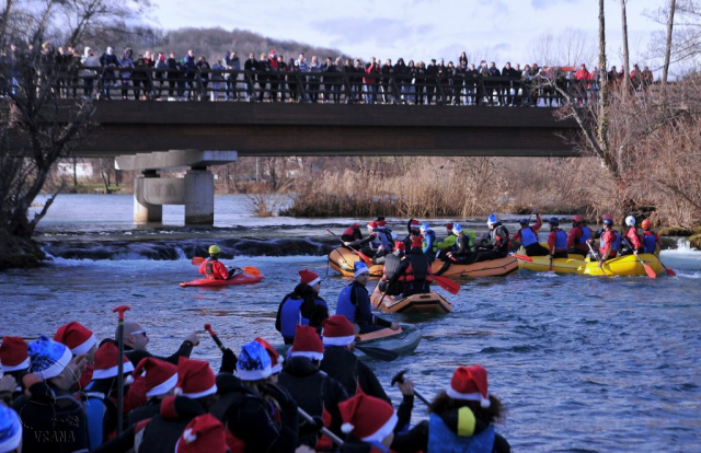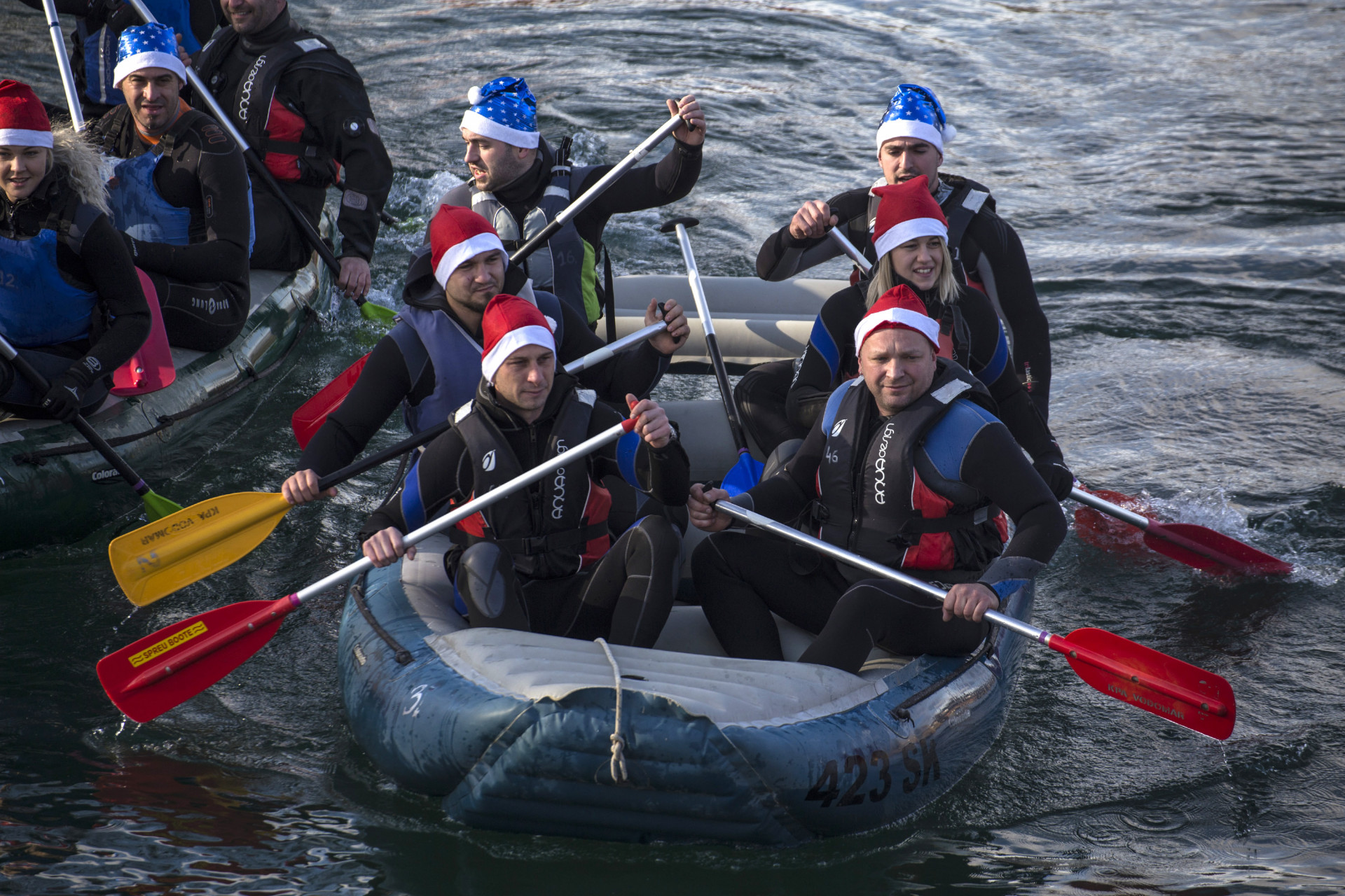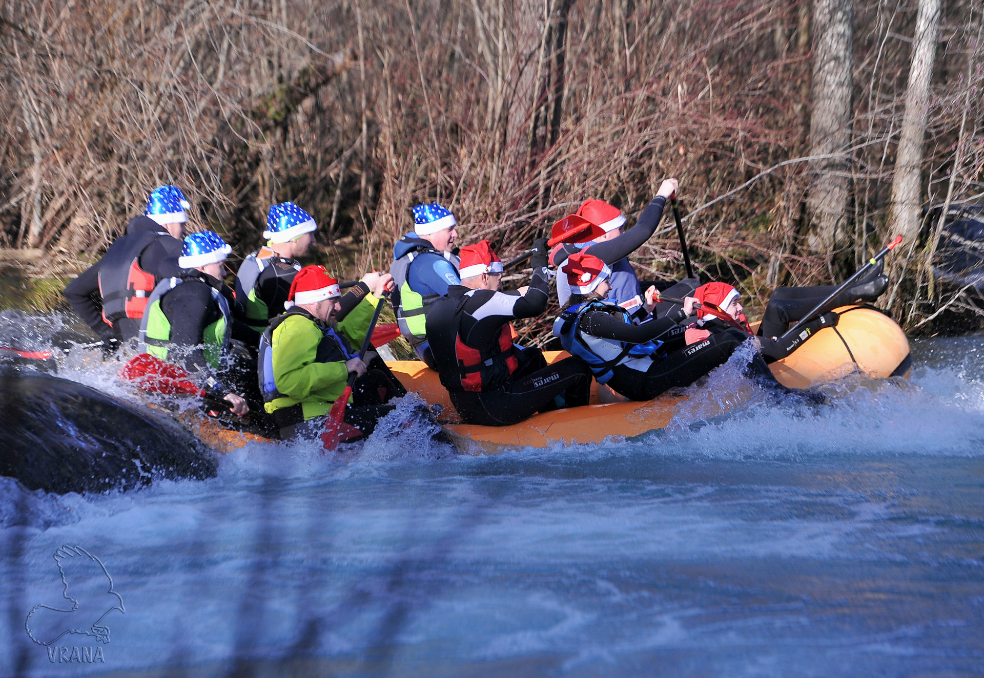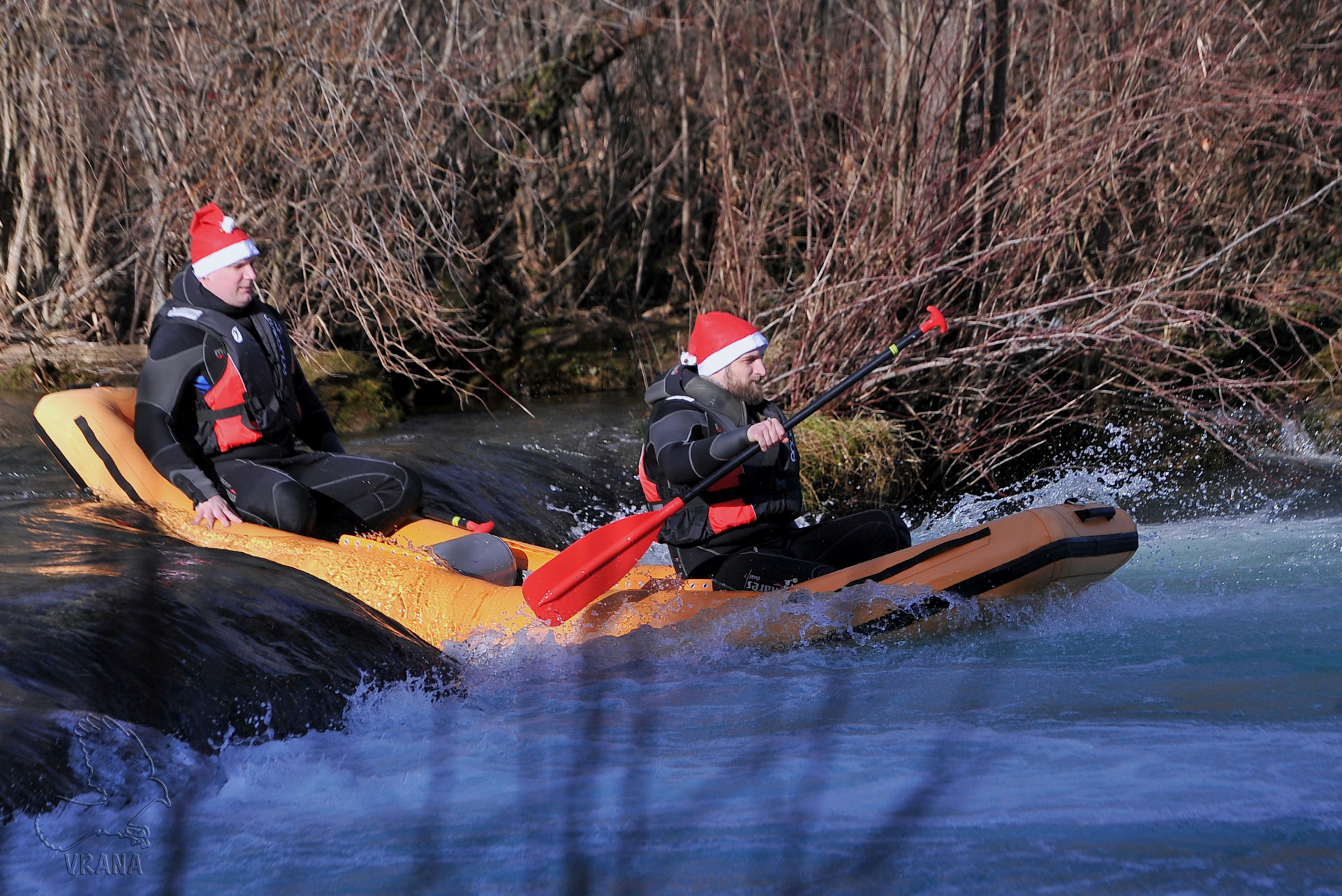26. prosinca, na Štefanje, naši dragi Vodomarci organizirali su još jedan, deveti po redu, Božićni rafting na rijeci Mrežnici, a spuštalo se, standardno, od Belavića do kupališta u centru Duge Rese. I članovi kluba RSM pružili su podršku ovoj, hvalevrijednoj humanitarnoj akciji i hrabro uskočili u gumenjake, da bi nakon dolaska na cilj s ostalim raftašima veselo zaplivali sa Djeda mrazovskim kapicama na glavi. A da bi sve proteklo kako treba, pobrinuo se i Vrana koji je odlučio zaroniti i malo pregledati dno Mrežnice na pola puta raftaške trase.