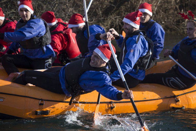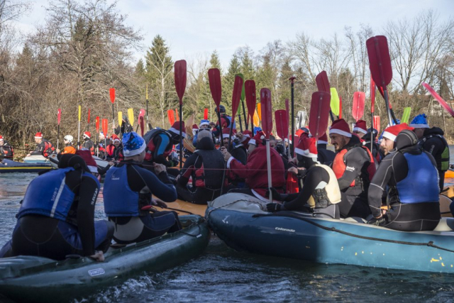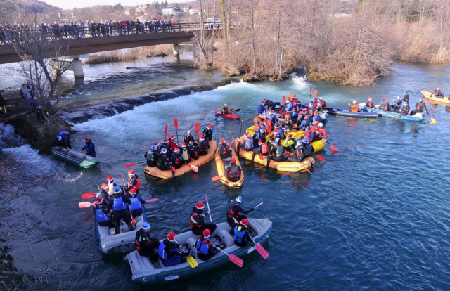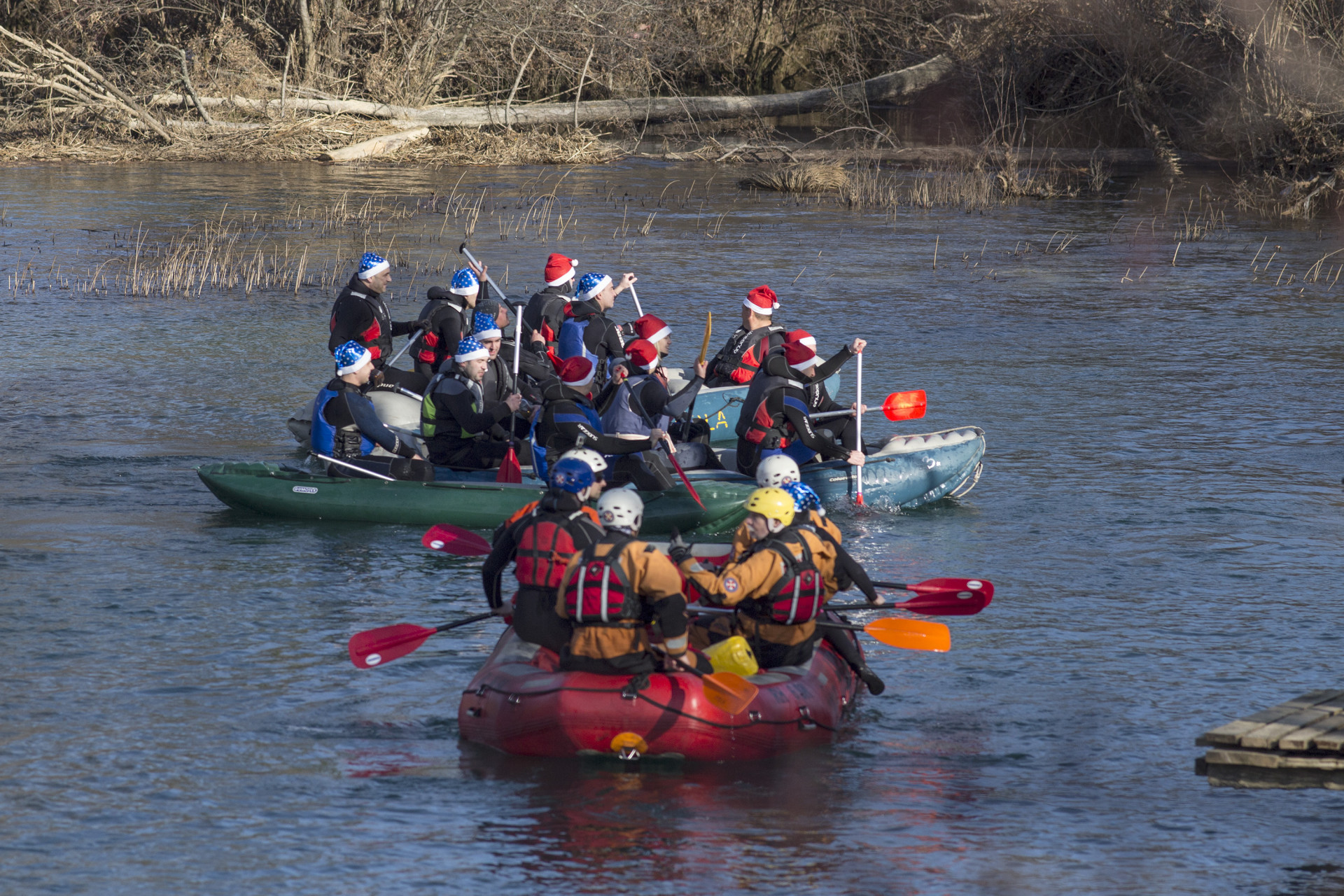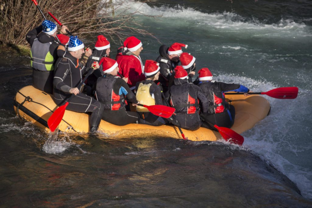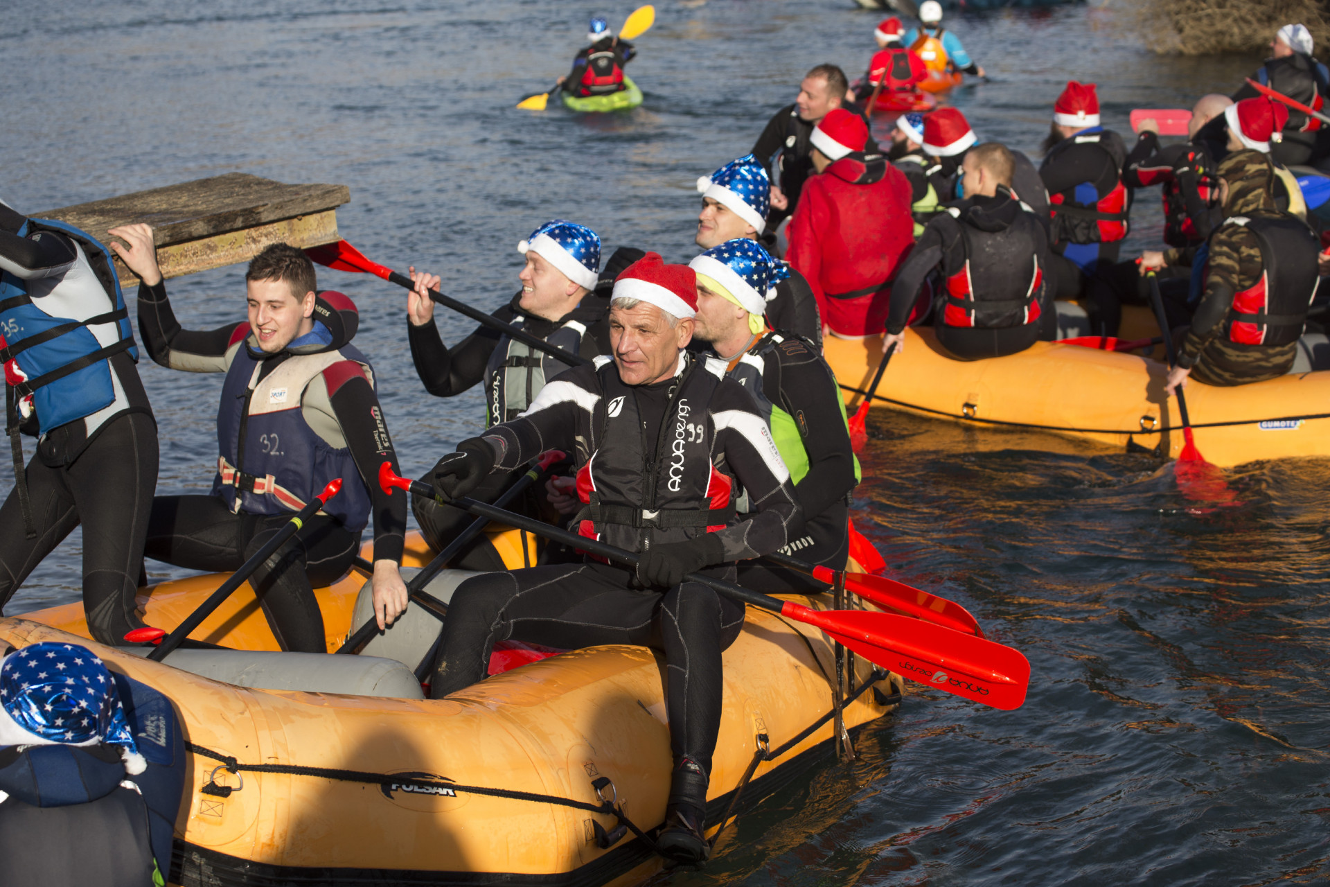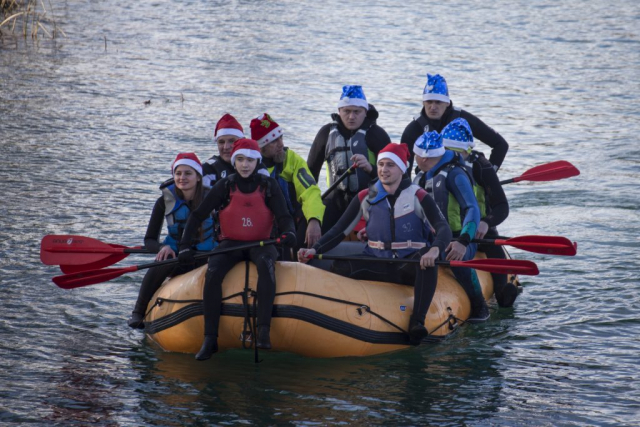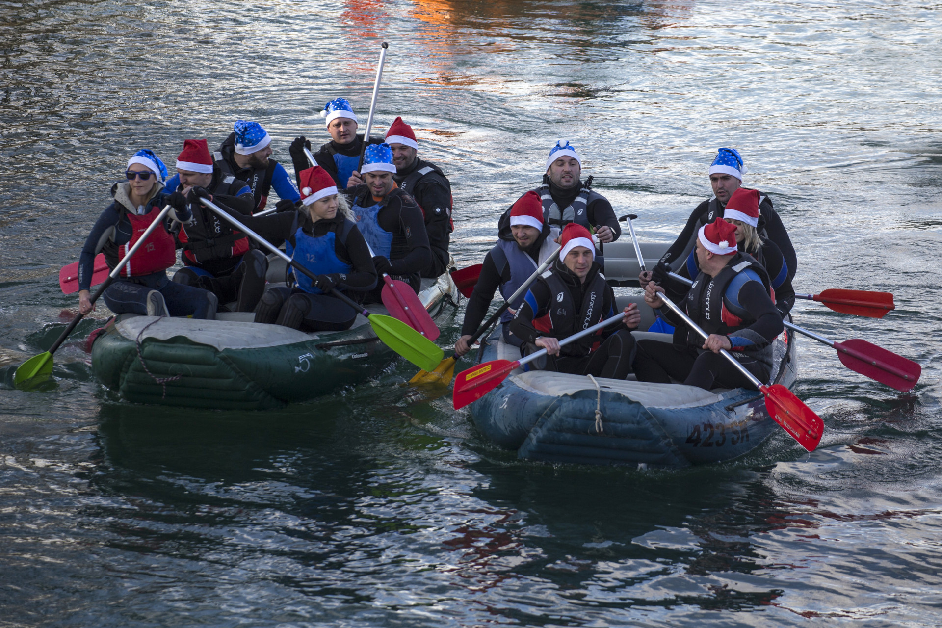 26. prosinca, na Štefanje, naši dragi Vodomarci organizirali su još jedan, deveti po redu, Božićni rafting na rijeci Mrežnici, a spuštalo se, standardno, od Belavića do kupališta u centru Duge Rese. I članovi kluba RSM pružili su podršku ovoj, hvalevrijednoj humanitarnoj akciji i hrabro uskočili u gumenjake, da bi nakon dolaska na cilj s ostalim raftašima veselo zaplivali sa Djeda mrazovskim kapicama na glavi. A da bi sve proteklo kako treba, pobrinuo se i Vrana koji je odlučio zaroniti i malo pregledati dno Mrežnice na pola puta raftaške trase.
