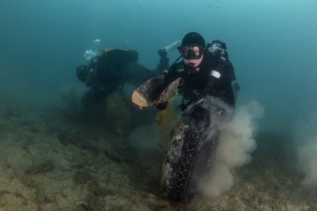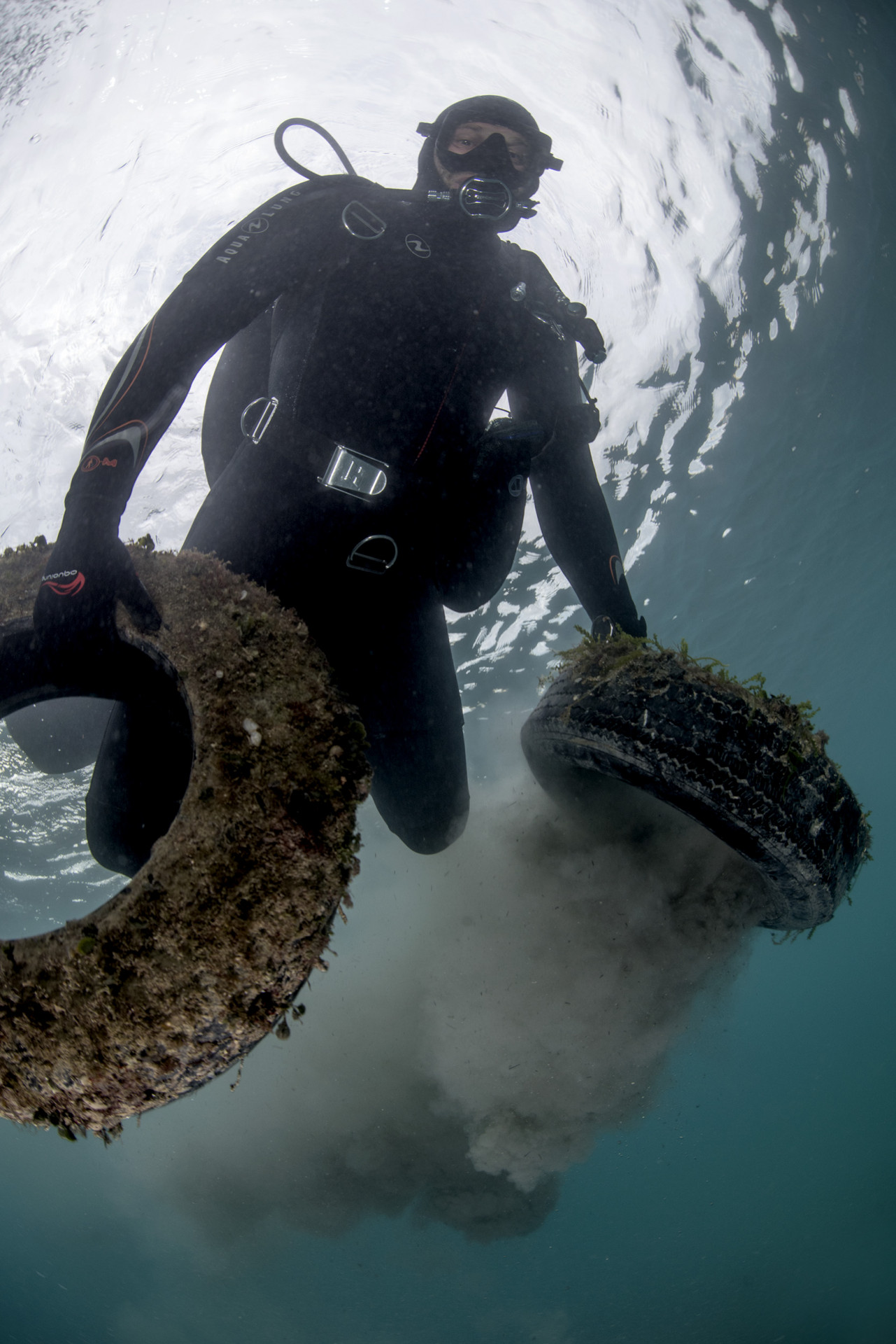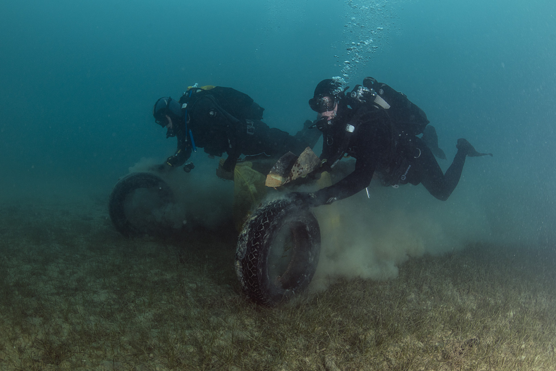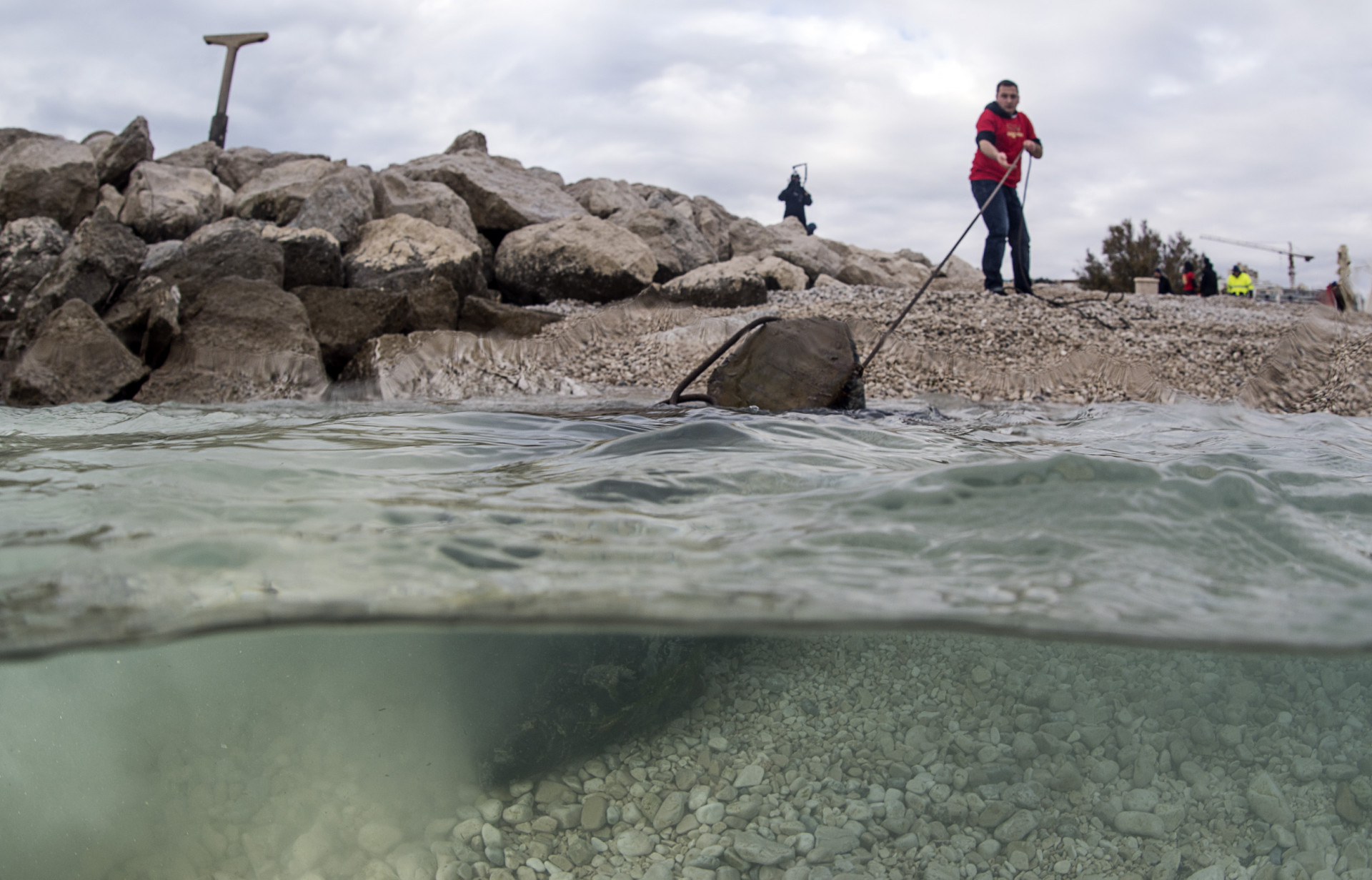 Iako je vanjska temperatura bila svega 2 stupnja celzija, ona morska od 15 je bila nešto podnošljivija. Dva sata, ronici su zdušno vadili sve što se izvaditi dalo: bezbroj guma, plastičnog otpada, sitnijih stvari, ali i jedan kontejner te protuavionski metak koji je nakon vađenja zbrinut od strane pirotehničara i drugih stručnih službi.