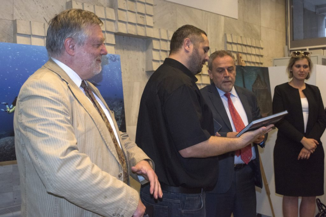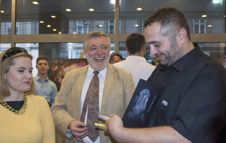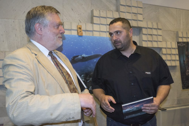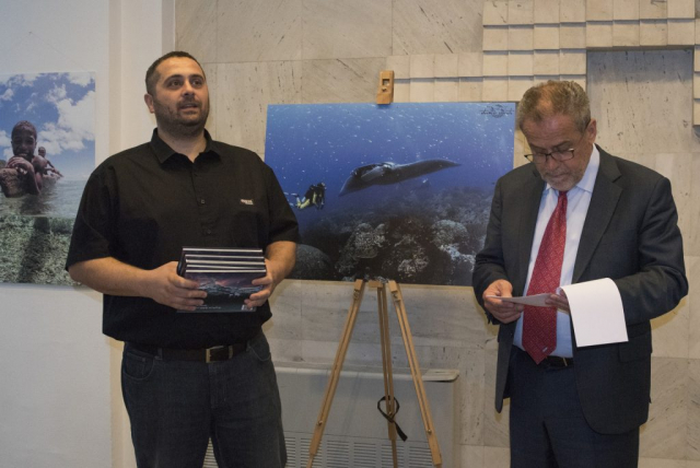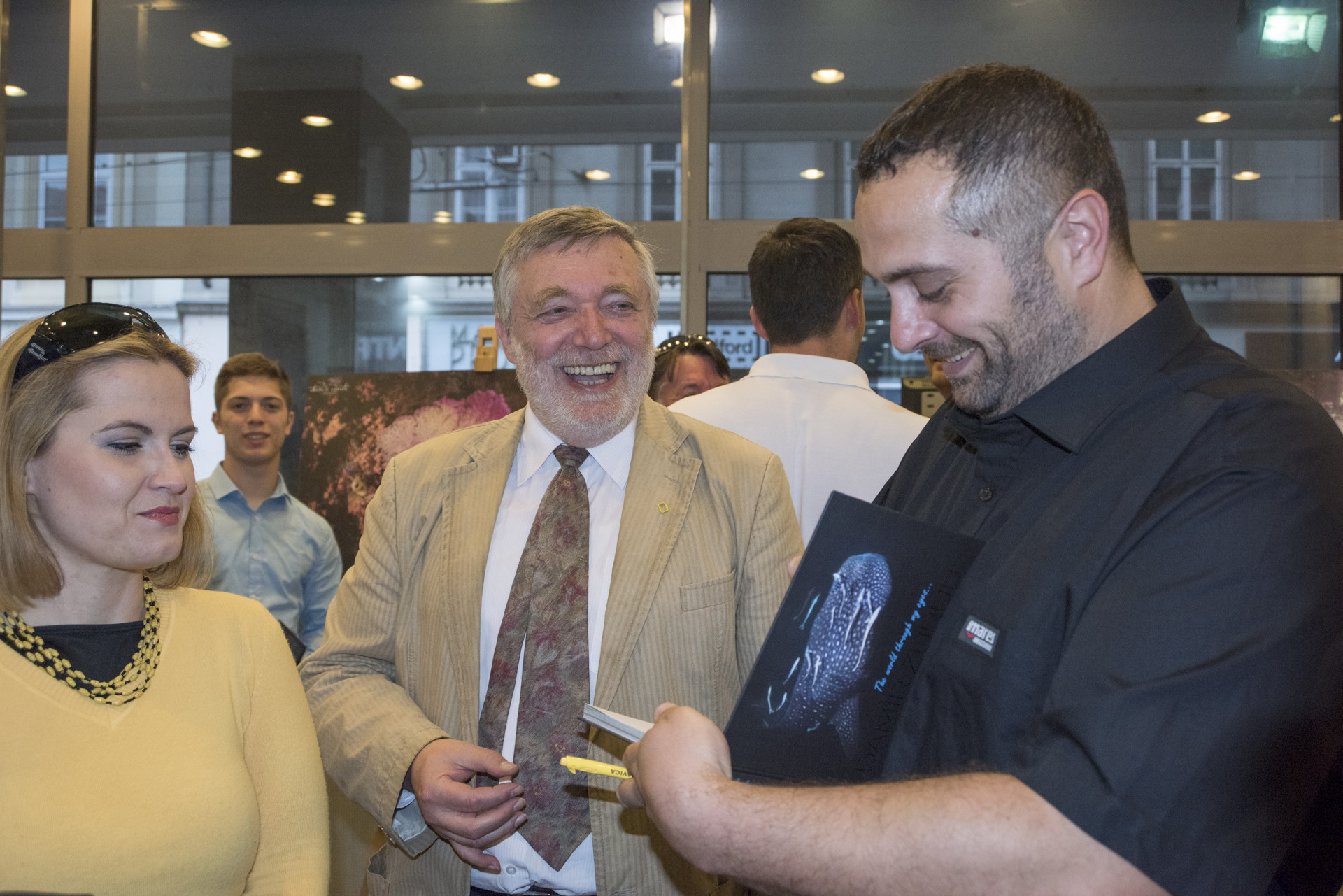 U izložbu "Plavi Svijet", ovom je prilikom promovirana i njegova prva knjiga "The world through my eyes", zbirka fotografija s njegovih ronilačkih pohoda u posljednjih nekoliko godina. Uz gradonačelnika Milana Bandića, kratak je govor održao i urednik National Geographica Hrvatska Hrvoje Prćić.