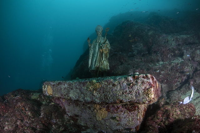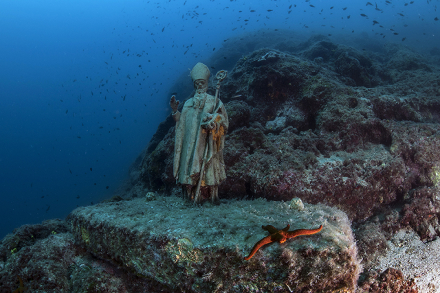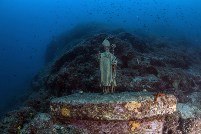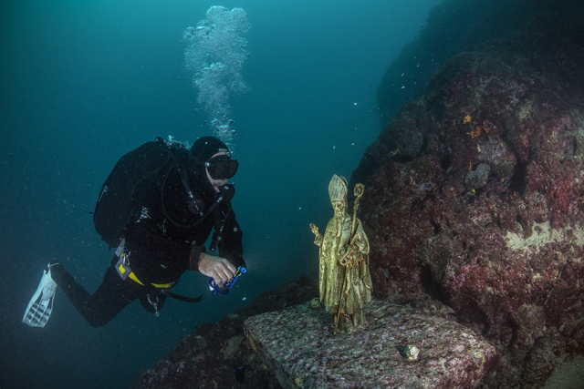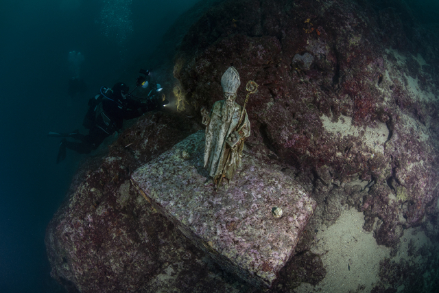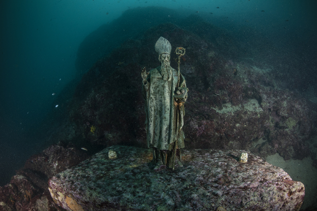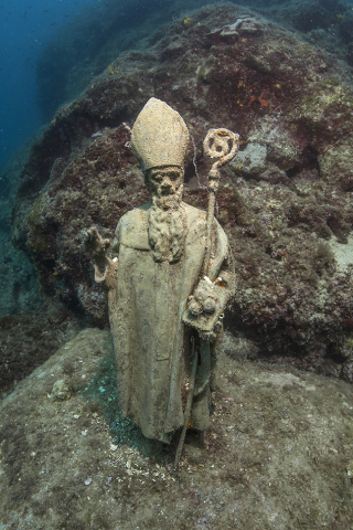 Smanjena kopija brončanog kipa Svetog Nikole, postavljena je u podmorje rta Lipica, na dubini od 17 metara.