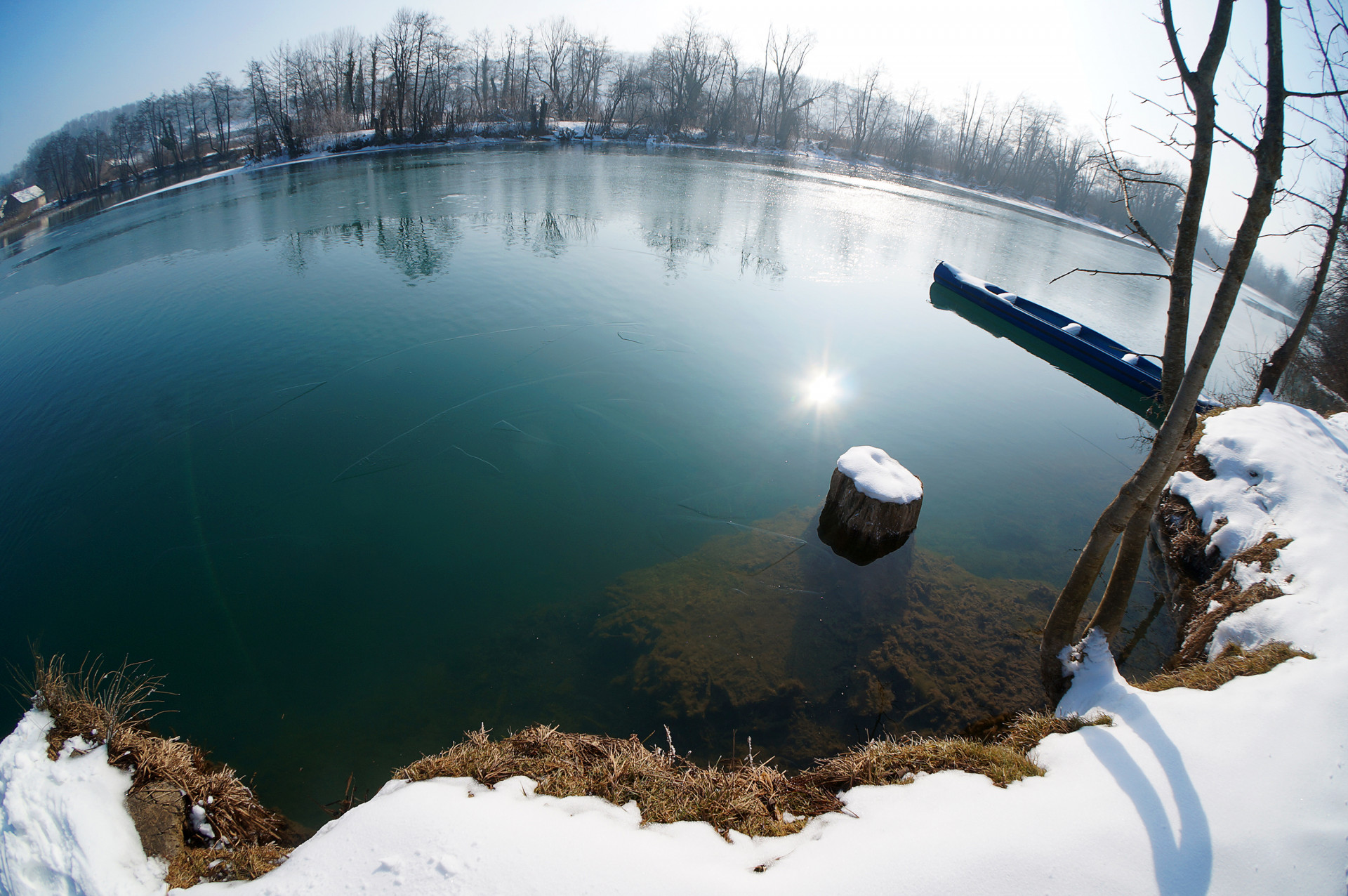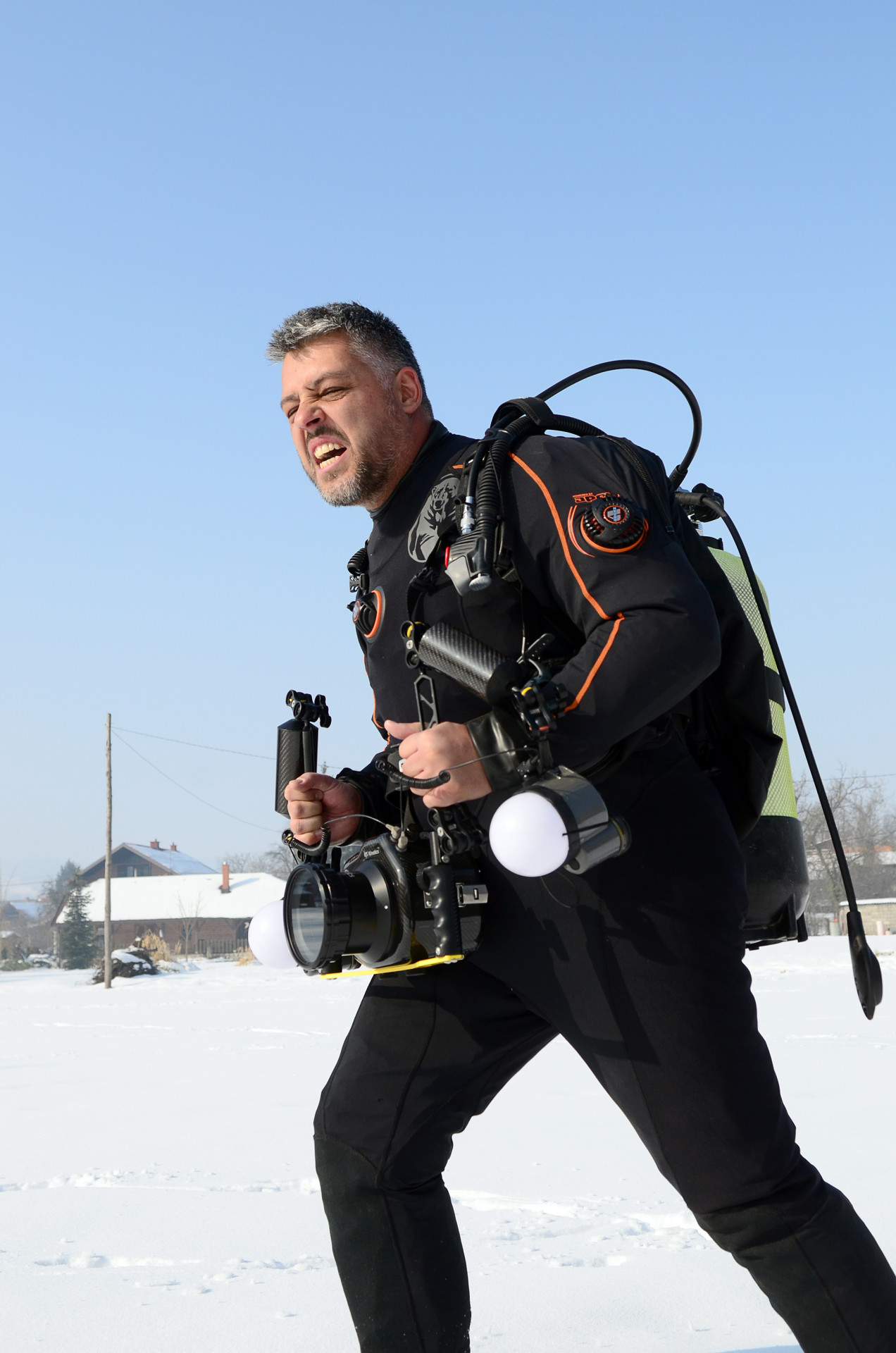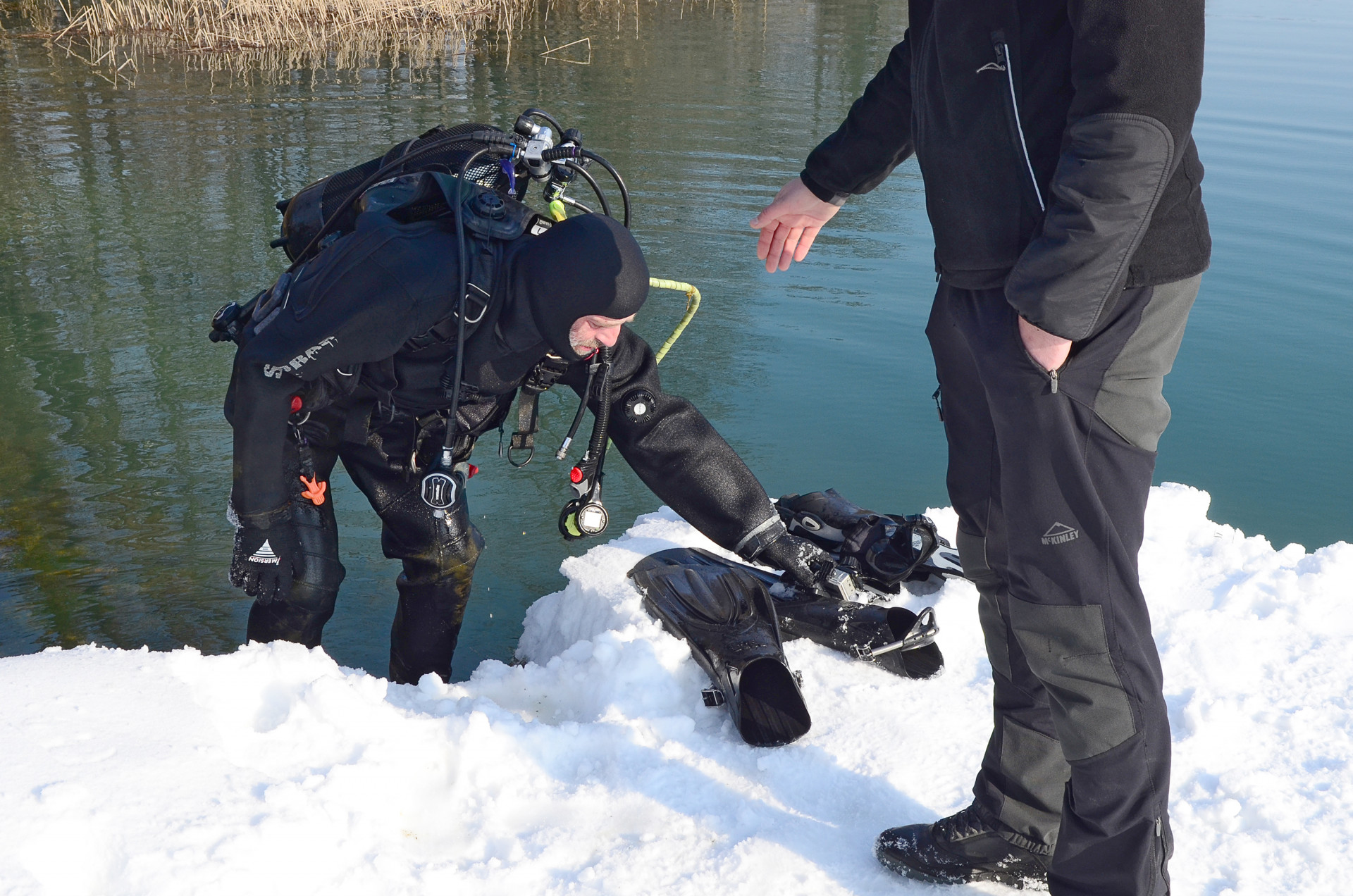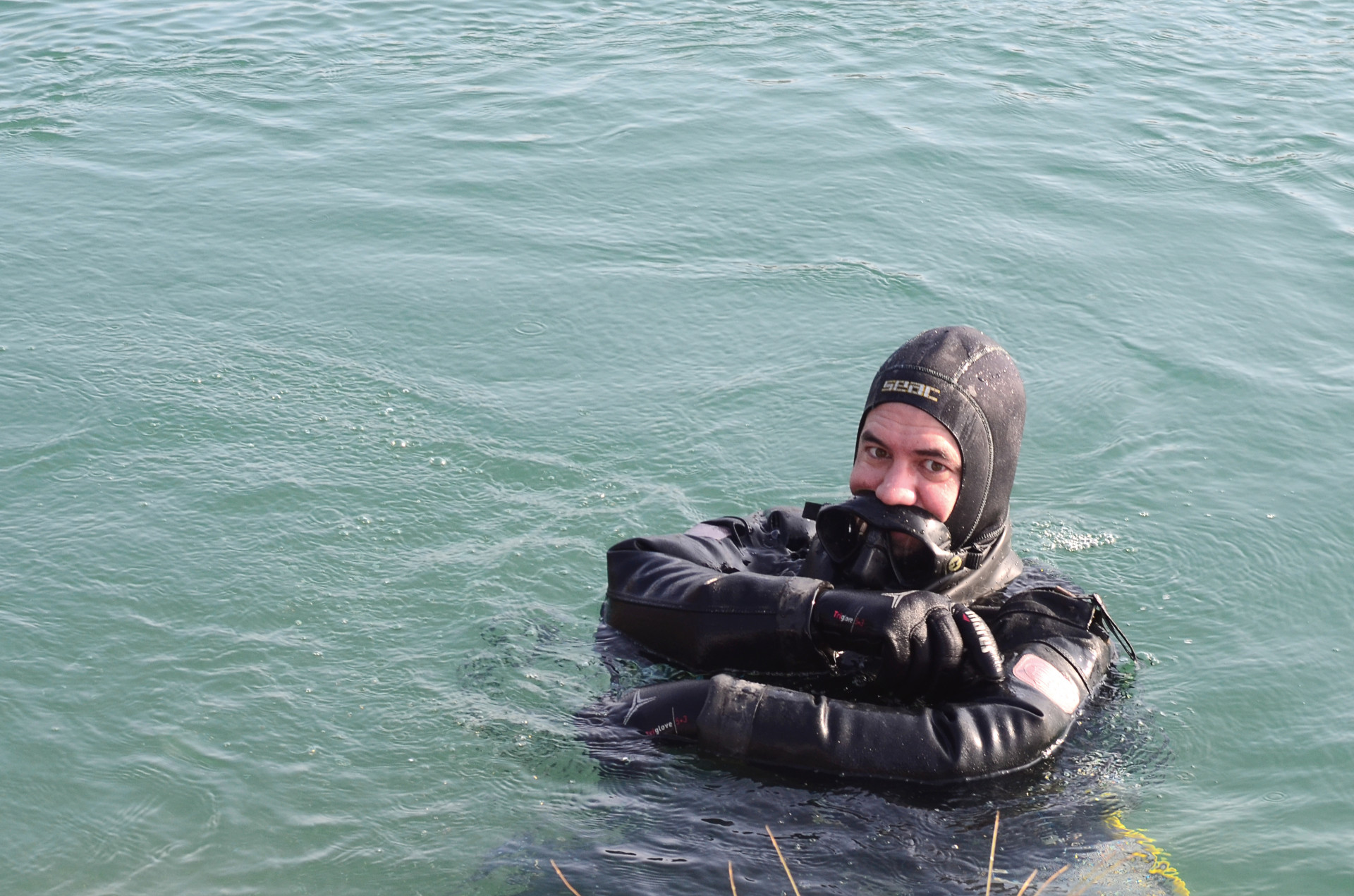 Naravno, iskrcala se i foto oprema. Jake snage podvodne fotografije brižno su posložile svoje fotoaparate na čeku uz rub jezera. Nick zvani Cave, u nedostatku špilje ili prikladne rupe u koju se može potrpat neki foto-model, bacio je pogled na obližnji panj koji je stršao iz rijeke. Odlično! Nakon uskakanja u vodu branio ga je ko golman u prvoj ligi. Vrana je više proučavao eko-sustav i bavio se videografijom, dok na kraju nije isprovocirao nekog jadnog raka, jedino zapaženo stvorenje na dotičnom zaronu...Oko sokolovo, Nikica, ko kobac je brojao mjehuriće s obale...Dugorešaninu Romanu ovo je sve bilo mačji kašalj, odradio je to junački, u mokrom odijelcetu..