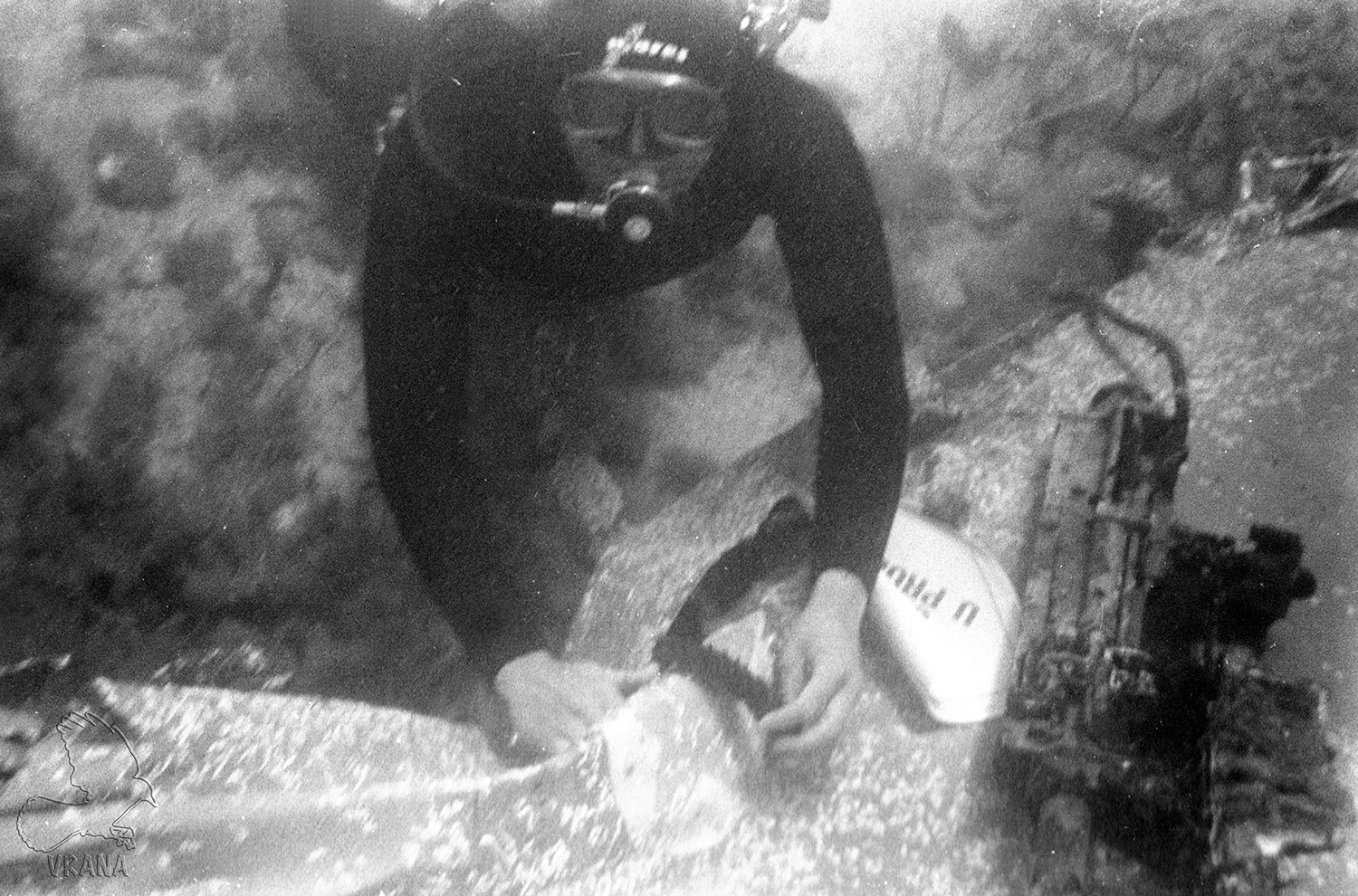 Fotoreporter Srđan Vrančić, ujedno i član našeg kluba "Roniti se mora" zaronio je na ovoj lokaciji sada već davne 1992. godine kada su hrvatski specijalci, ronioci, s palog zrakoplova skinuli oružje koje se tada još uvijek moglo upotrijebiti. Tadašnja ekipa Boris Frković, podvodni diverzant, podvodni ribolovac član pričuvnog sastava HRM, Ivica Baturina, aktivni član HRM, podvodni diverzant iz ratne luke Lora Vilko Halbert jr. član protudiverzantske grupe Trogir i Vrančić, rano ujutro se uputila na zaron u barci koju je ustupio mještanin, podvodni ribolovac Paško Lovrić. Ronilo se tada 8 sati, a na 15m dubine i u krugu od 10 metara pronadjeni su svi teški djelovi "Jasreba". Nešto dublje locirano je i ostalo: krilo, cockpit i dijelovi kabine.